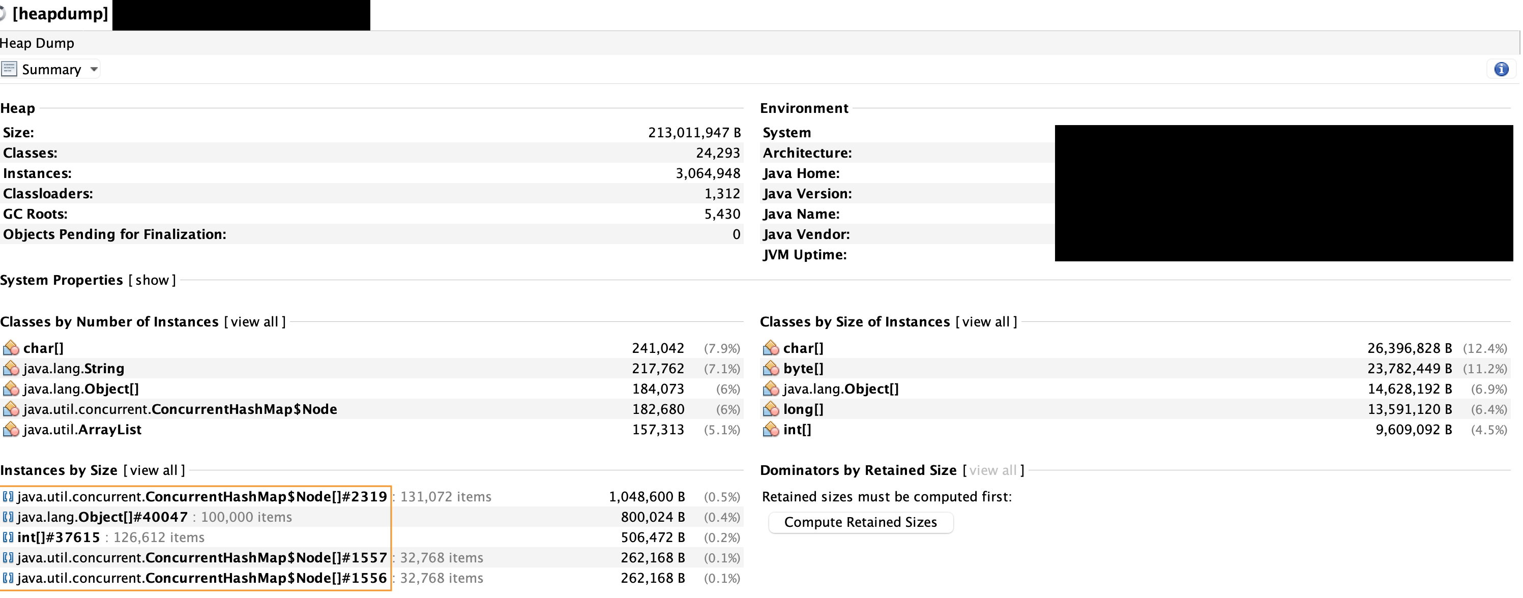 덤프 파일을 VisualVM으로 확인 했는데 막막했다. 힙 메모리를 분석 해보거나, 아직 GC등 JVM 성능과 관련된 내용을 깊게 공부해본적 없었기 때문인데, 어쩔 수 없이 개인적으로 의심스러운 부분을 기준으로 세워 확인 해볼 수 밖에 없었다.