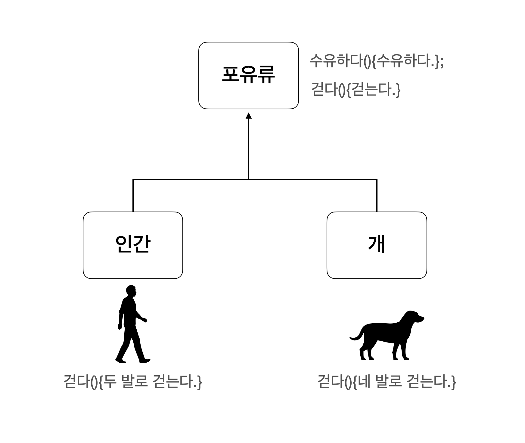 타입(Type)은 표현할 수 있는 방법이라고 할 수 있다. 예를 들어 개와 인간과 같은 포유류 들은 젖샘이 있어 수유를 한다는 공톰점을 공유한다. 또한 개와 인간은 모두 걷는다 하지만, 개는 네 발로 걷고 우리는 두 발로 걷는다. 이와 같이 같은 행동을 수행 하면서도 그 방법과 방식은 조금씩 다를 수 있다. 이러한 조그마한 차이들을 구체적으로 표현하기 위해 필요한 것이 오버라이딩이다.