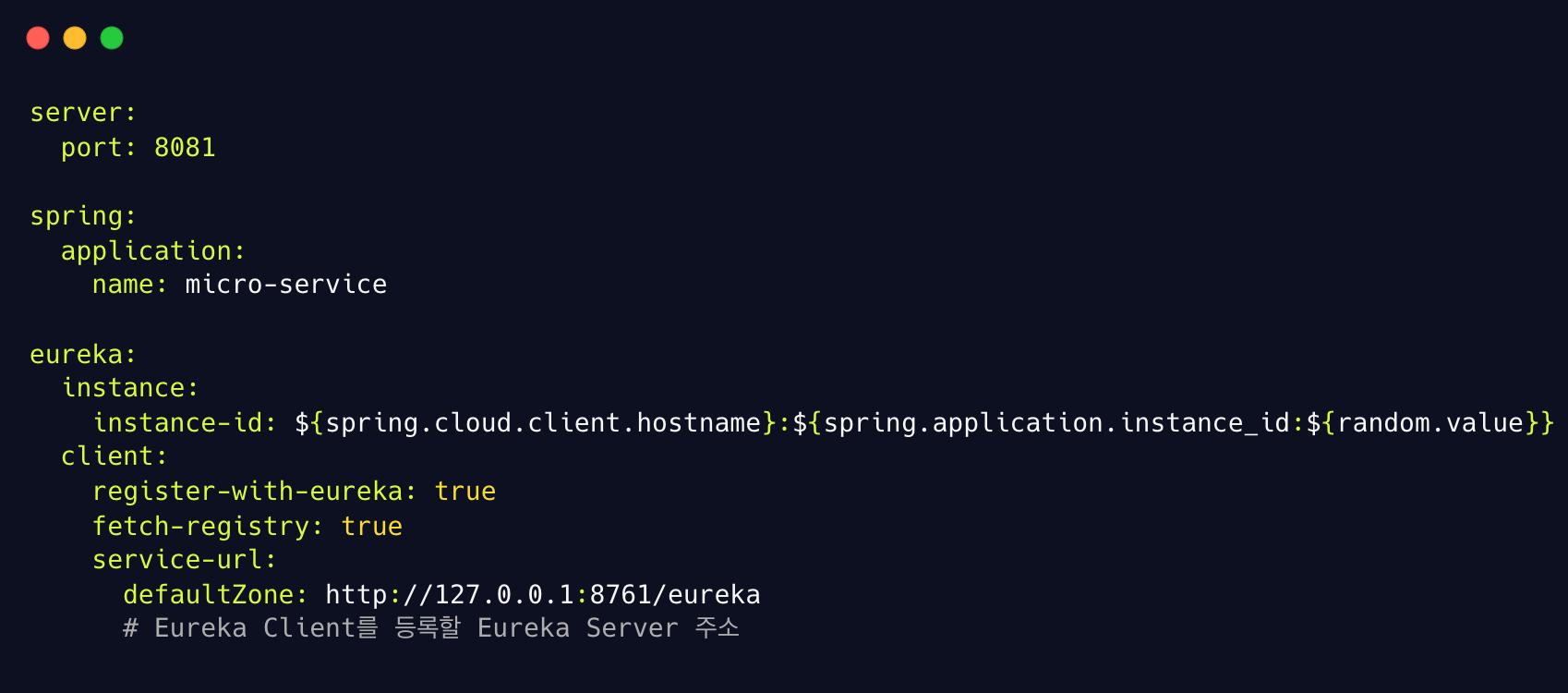 3. Eureka Client 설정 ( .yml or .applications )