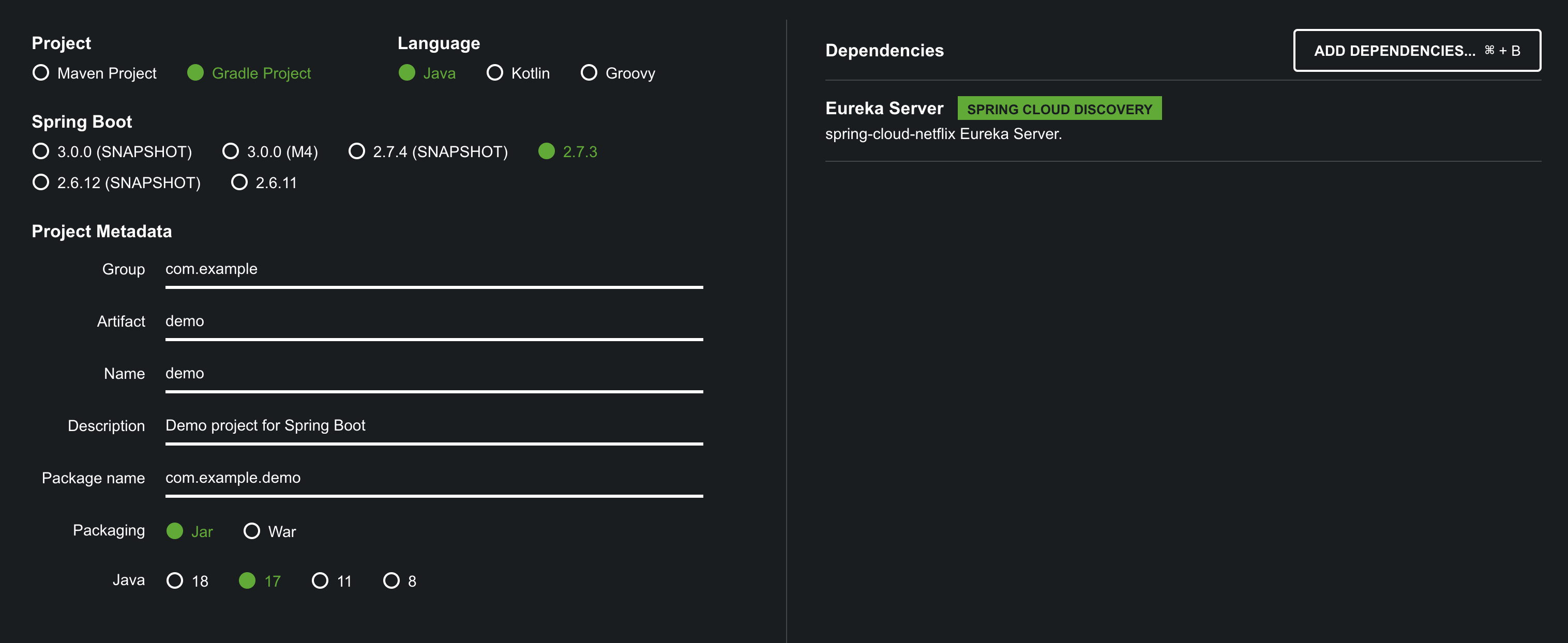 1. Eureka Client 의존성 추가 ( Gradle 기준 )