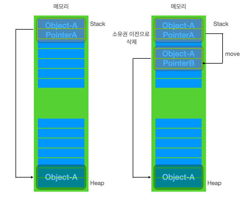 exclusive ownership는 독점 소유권이라고 해석된다. 이는 하나의 오브젝트를 단 하나의 포인터만 가리킬 수 있다는 의미이다. Pass By Reference 시 해당 포인터를 Copy 하는 것이 아니라 소유권이 이전(move)되어 이전 단계의 포인터는 제거된다.