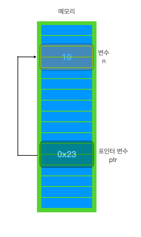 // 포인터 변수 ptr을 통해 변수 n의 주소를 가리키고 있다.